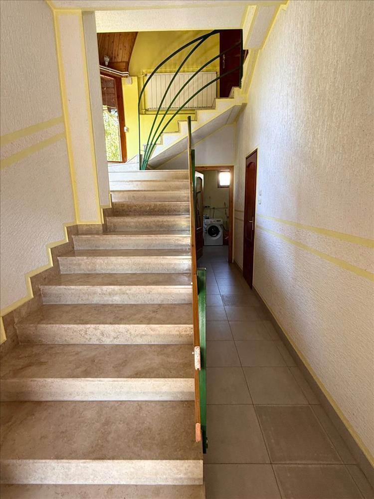 Központi porszívó (! ! ), 30-As porotherm tégla + szigetelés. Gázcirkó fűtés radiátorokkal, kiegészítő fűtés kandallóval, hűtés fan COIL-lal. Héjazat: kerámia cserép, tető szigetelés: 10 cm Therwoolyn. Nyílászárók: fa ajtók, sofa rendszerű hőszigetelt ablakok. Melegburkolat: fa parketta, lépcső-monolit vasbeton, mészkő burkolattal.