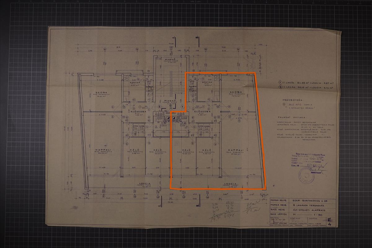 A 2. emeleten található lakás észak-déli tájolású, északi irányban (egy szoba és a konyha) az Eged hegyre, a déli irányban az erkélyről a fás utcára nyílik kilátás.