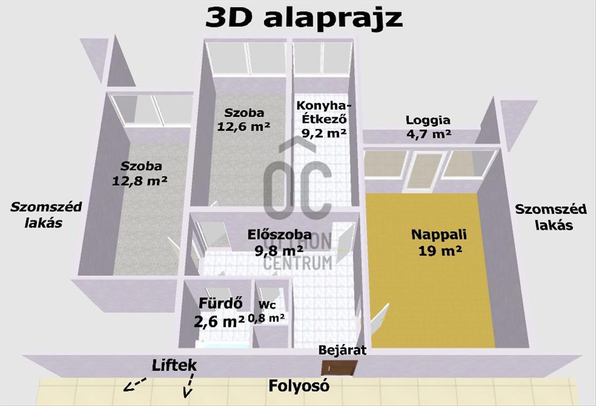A helyiségek elrendezését lásd a méretezett alaprajzon és 3d alaprajzon, ezeket a komoly érdeklődők rendelkezésére bocsátom a megtekintés után, hasznos lehet a tervezés és a berendezés során.