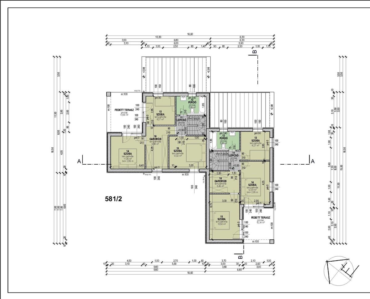 Emelet: 3 szoba, fürdőszoba, fedett terasz