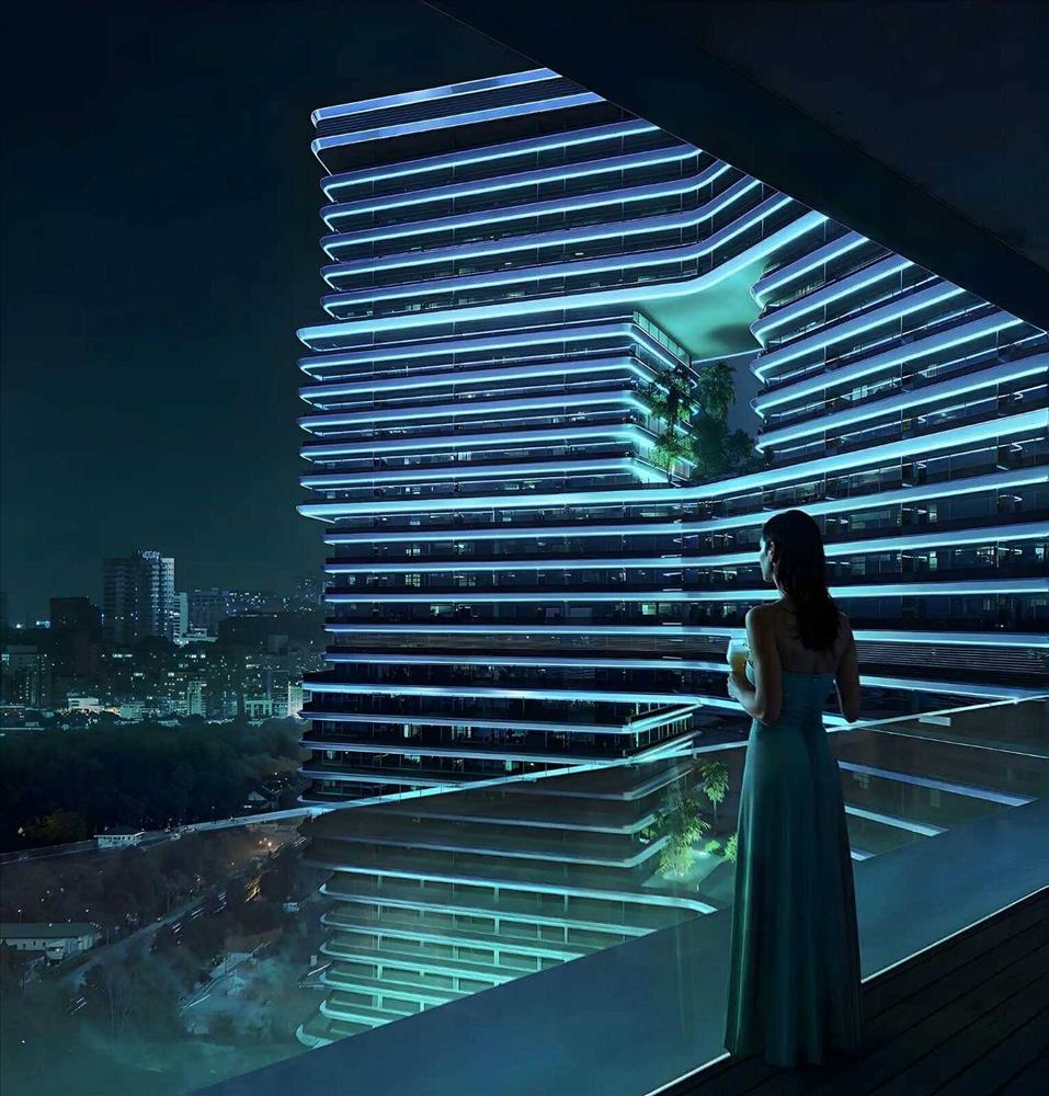 Ikonikus építészet: a Binghatti-ra jellemző egyedi, "felhőkarcoló-szerű" teraszok és a modern homlokzat kiemeli az épületet a környezetéből, növelve a presztízsét.