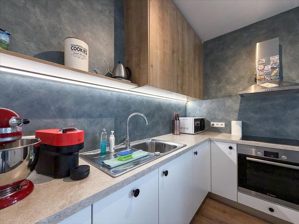 magas minőségű, egyedi beépített bútorok, igényes anyaghasználat, Liebherr beépített hűtő, valamint Bosch és Siemens konyhai gépek gondoskodnak arról, hogy itt ne csak a fotók nézzenek ki jól, hanem a mindennapi használat is öröm legyen.