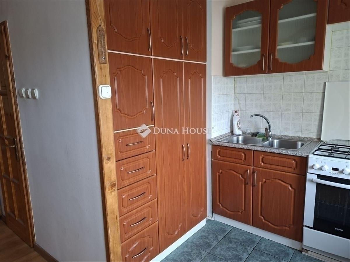Az egyik szobában plafonig érő gardróbszekrény, a konyhában is beépített szekrény található.