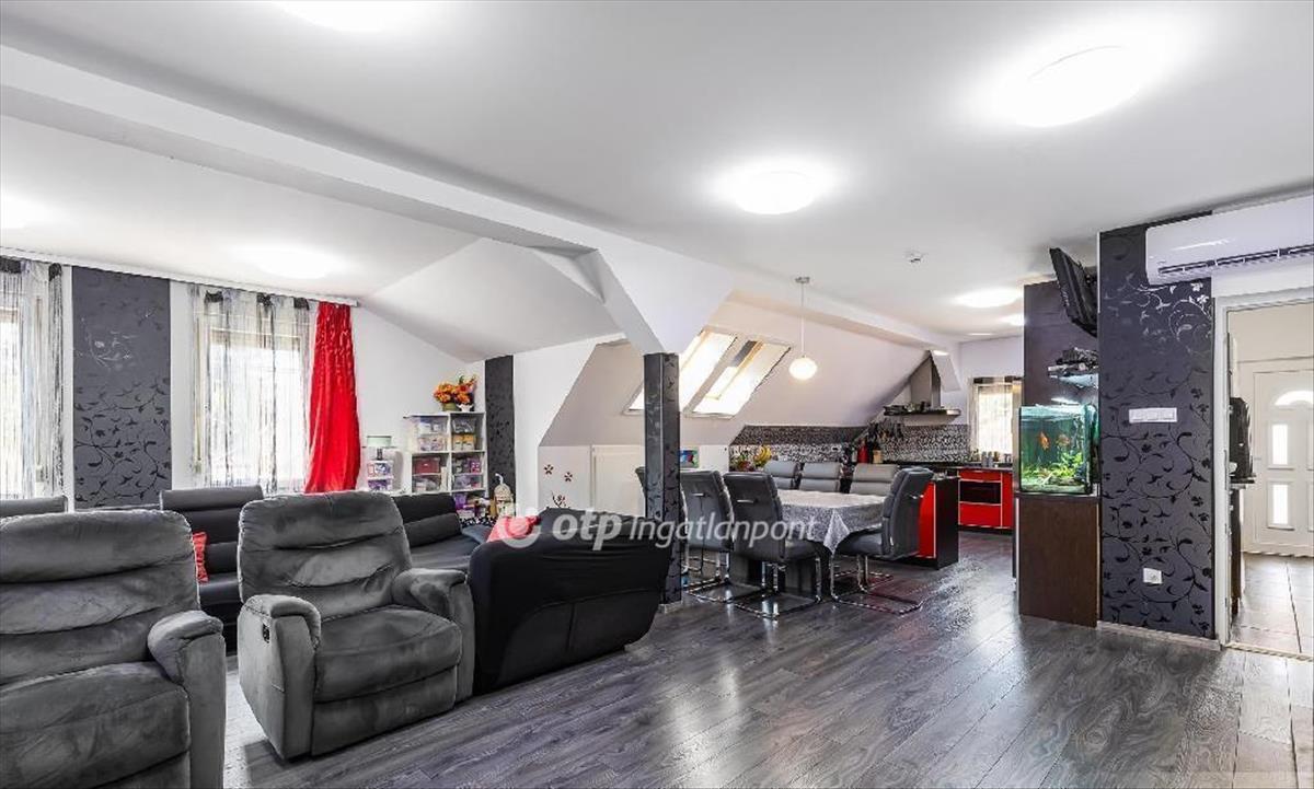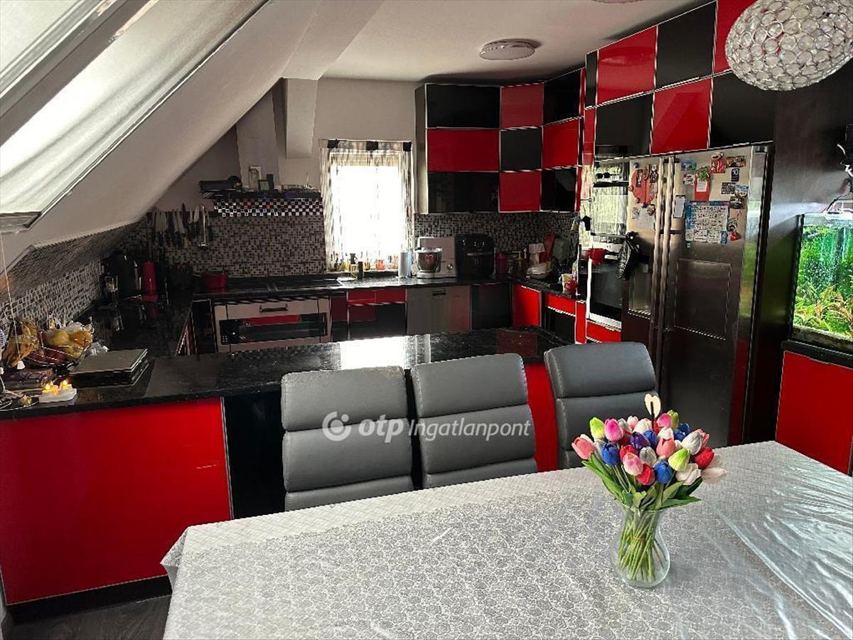 A tetőtér két lakásból áll: egy 25 m2-es egyszobás, kádas fürdőszobás garzonból, valamint egy nagyobb, három hálószobás, kádas fürdőszobás, hatalmas amerikai konyhás étkezős nappalival rendelkező lakásból. Jelenleg a két lakás egy háztartásban található. Minden hálószoba és nappali inverteres hűtő-fűtő klímával felszerelt. a tetőtérbe külön külső lépcső vezet, mely egy 12 m2-es teraszra érkezik.