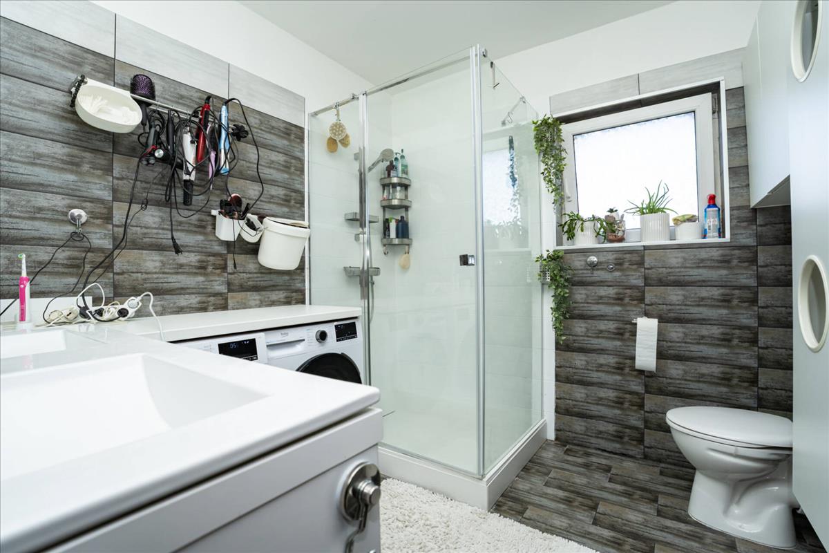 -Szobákban laminált padló, a többi helyiségben járólap