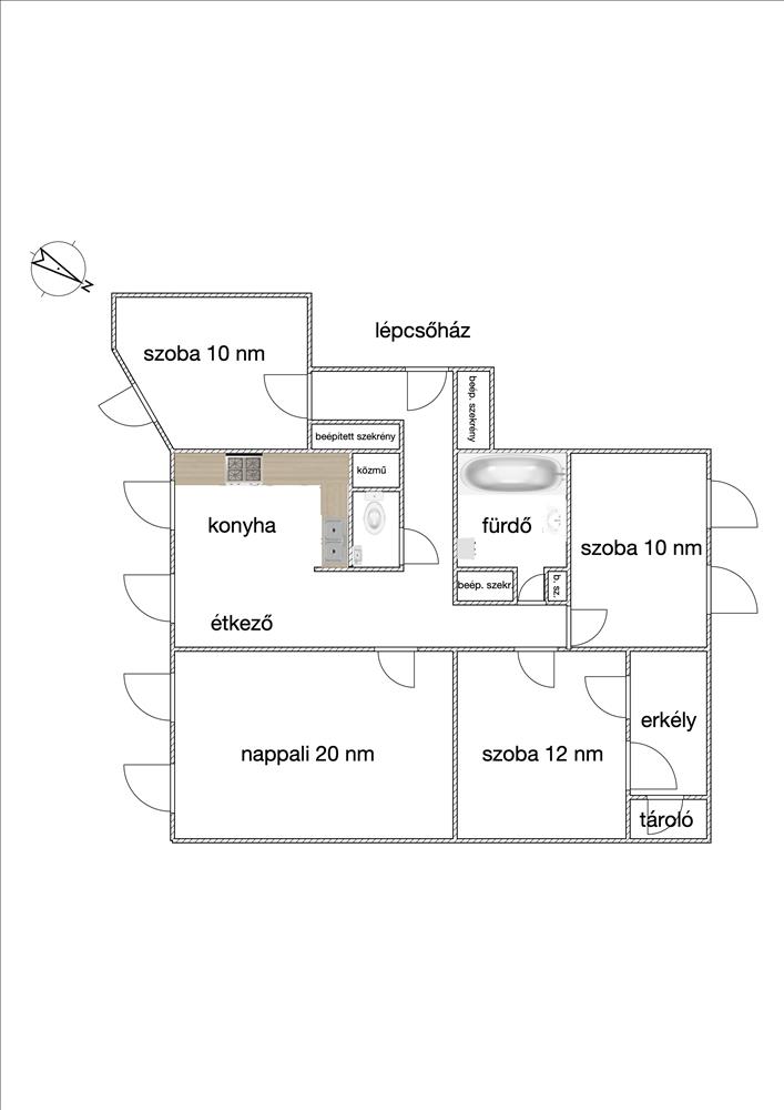 - 4 szobás, 79 nm-es, fürdő és wc külön helyiségben található,