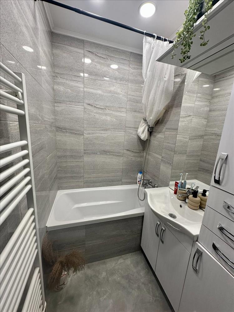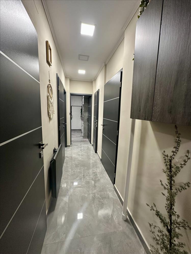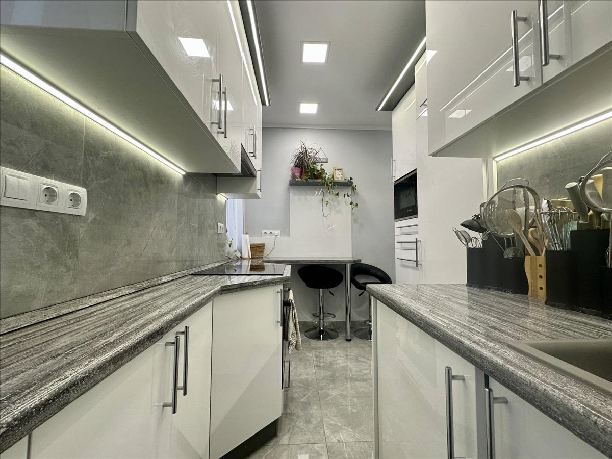 The apartment has undergone a complete technical and aesthetic renovation, where not only the appearance but also the underlying functionality received special attention. Modern plastic windows and doors with insect screens and aluminum shutters ensure comfort, while the entire electrical system has been upgraded with new wiring, separate circuit breakers, an rcd, and increased capacity. The water and sewage pipes have also been replaced, guaranteeing trouble-free use in the long term.