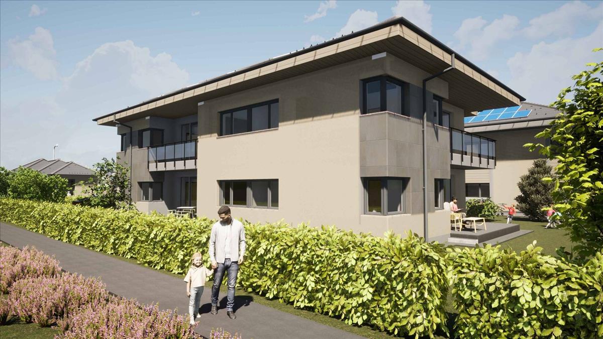 Mendén, új építésű, 4 lakásos társasházban, 78. 5 m2-es, hőszivattyús, saját autóbeállóval, tárolóval és 244. 5 m2-es kizárólagos használatú kerttel rendelkező lakás ELADÓ!