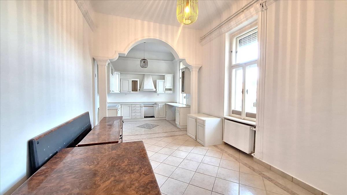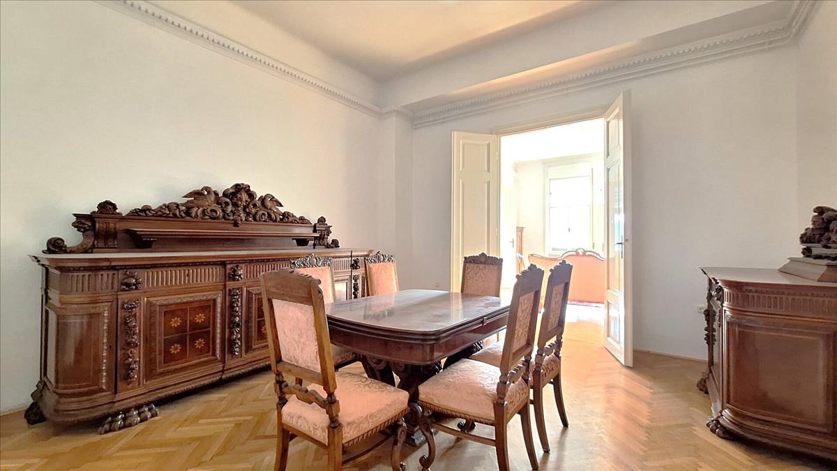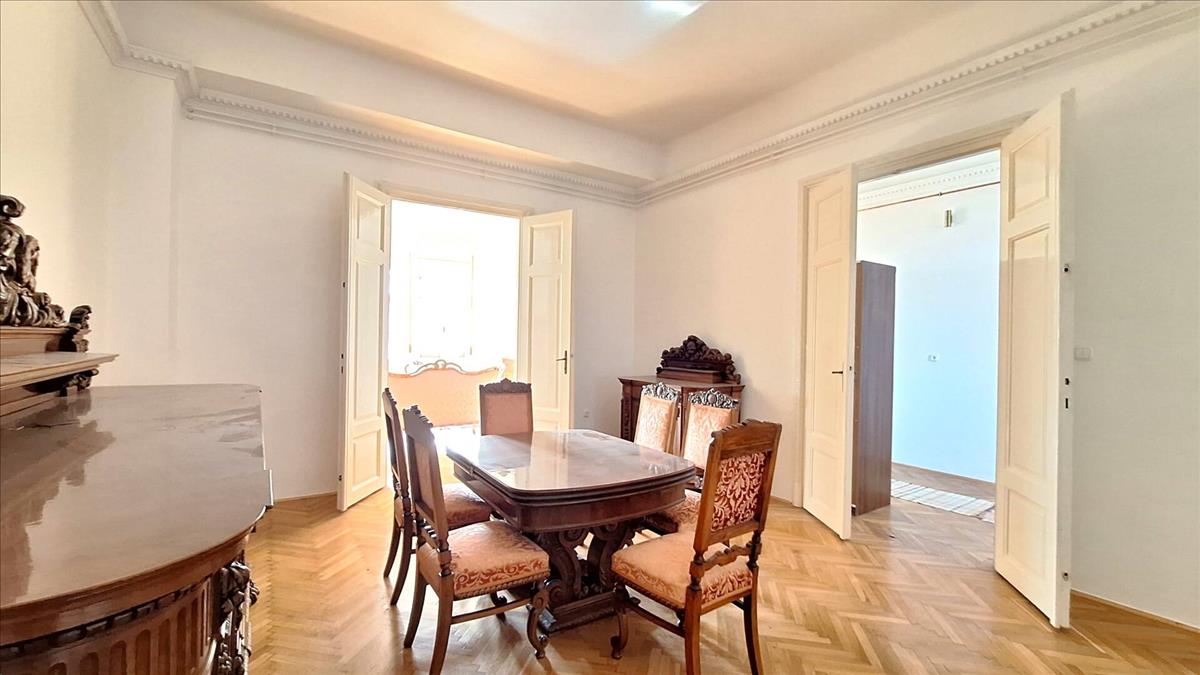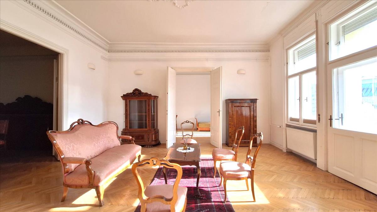 Miskolc történelmi belvárosában eladó egy lenyűgöző, nagypolgári stílusú, 167 nm-es, felújított, tégla építésű polgári stílusú lakás. Az ingatlan egy patinás, liftes társasház 3. emeletén található, zárt udvarral rendelkezik, ötvözve a klasszikus eleganciát a modern műszaki tartalommal.