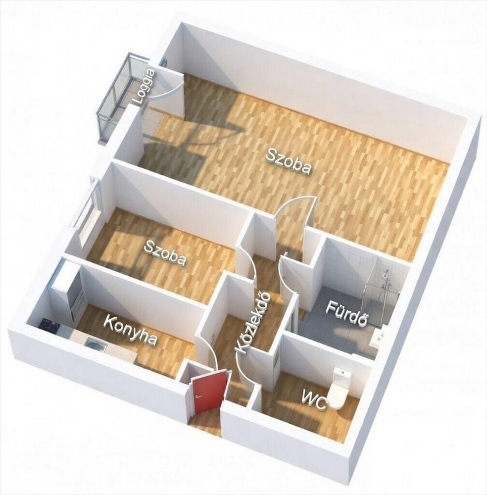 • Szobák: Tágas nappali (szoba) + különálló 1, 5. Szoba (pl. Háló vagy dolgozó)