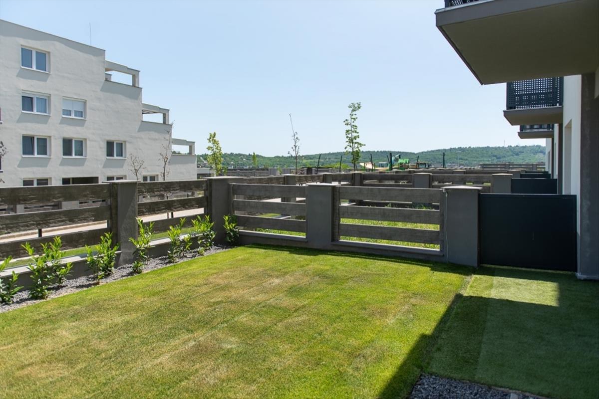 A földszinti lakások közvetlen, körbekerített kertkapcsolattal is rendelkeznek a teraszok mellett, méretűk változó.