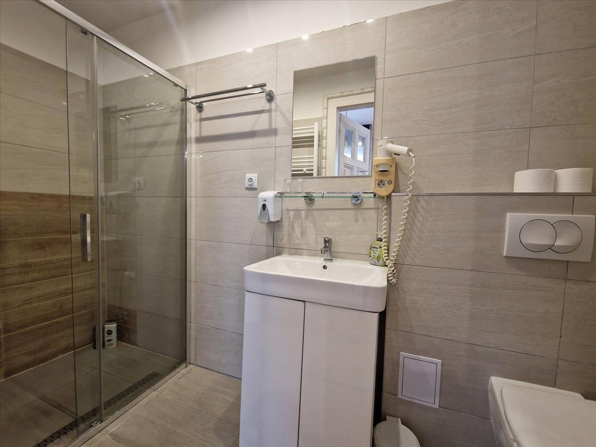 Az ingatlan jelenleg három különálló, igényesen kialakított apartmanként működik, mindegyikhez saját zuhanyzós fürdőszoba tartozik. Emellett található benne egy külön konyhahelyiség, amely kisebb felújítás után tágas, hangulatos konyha-étkezőként funkcionálhat.