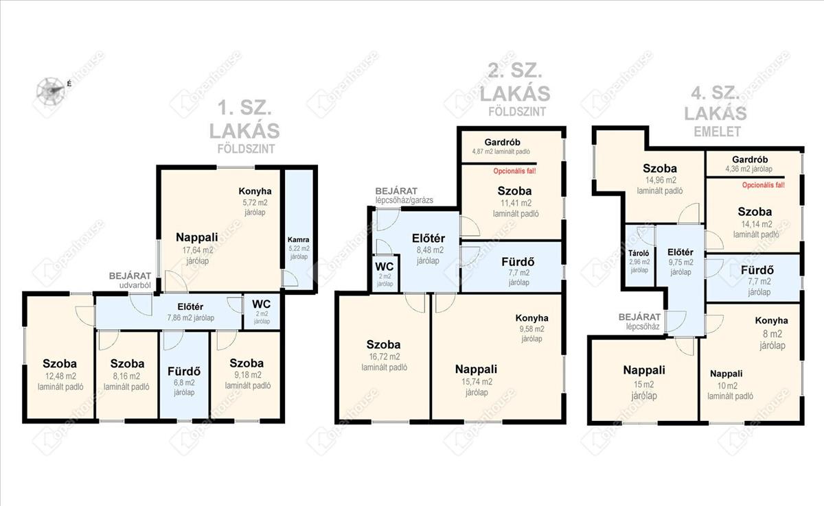 - egy 13 m2-es keleti tájolású szoba és 16 m2-es szoba opcionálisan gardrobe-al pedig északkeleti tájolású