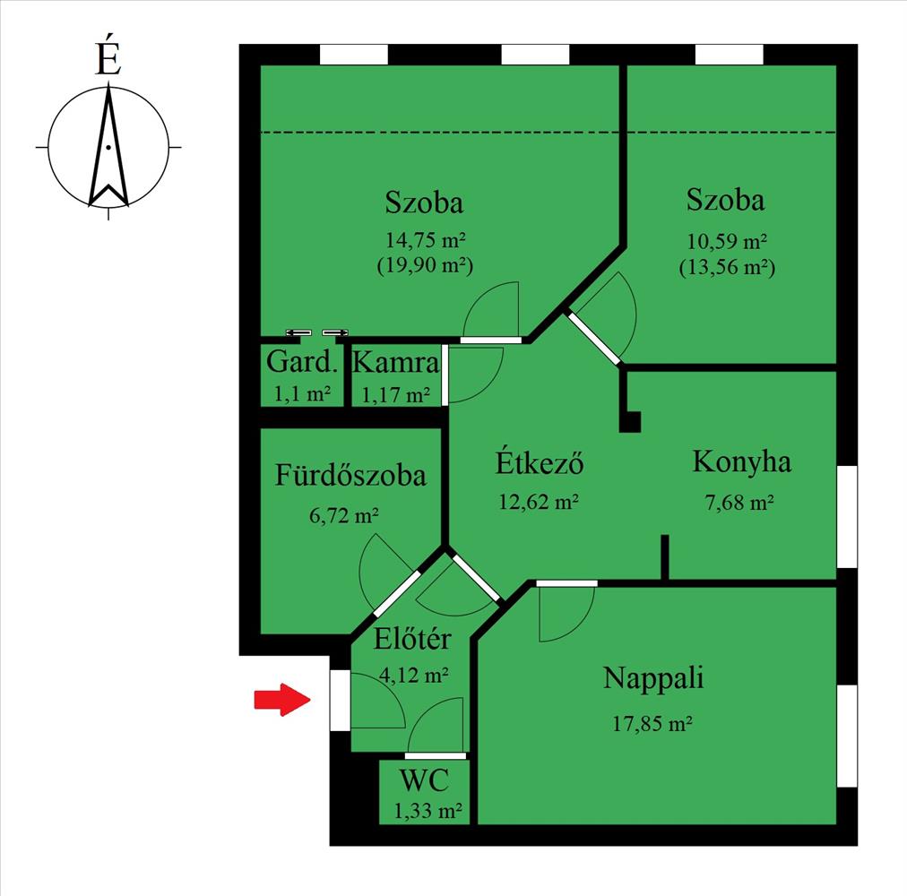 A lakás elrendezése praktikus és jól átgondolt: három külön nyíló szoba biztosítja a kényelmes életteret, a világos étkező-konyha a családi és baráti együttlétek ideális helyszíne. a fürdőszoba és a külön wc a mindennapi használatot teszi gördülékennyé, míg a gardróbhelyiség kényelmes tárolási lehetőséget nyújt.