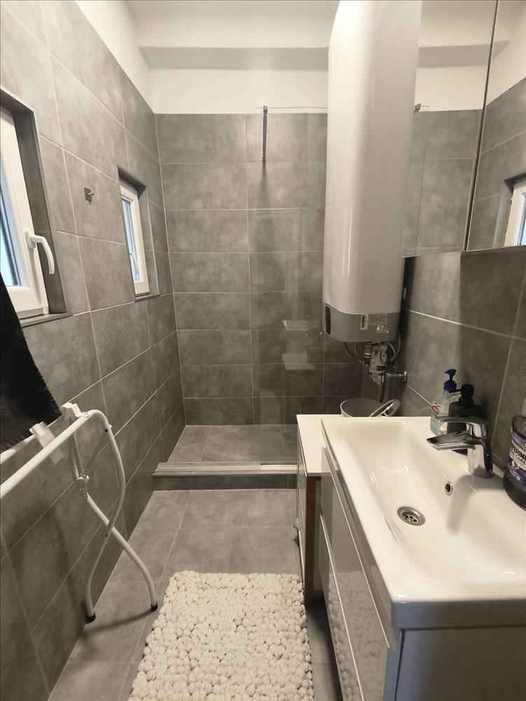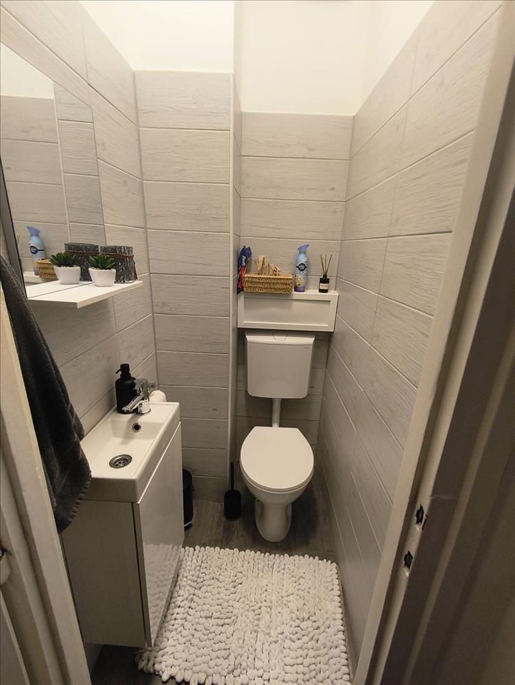 Magas minőségű burkolatok: hidegburkolat a közlekedőkben, konyhában és vizes helyiségekben, laminált padló a szobákban