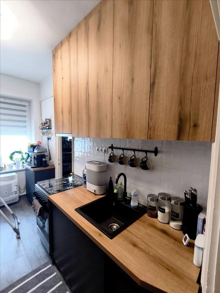 A vételár részét képezi a konyhai étkezőasztal székekkel, valamint a beépített gépek is. (Tűzhely, mosogatógép)