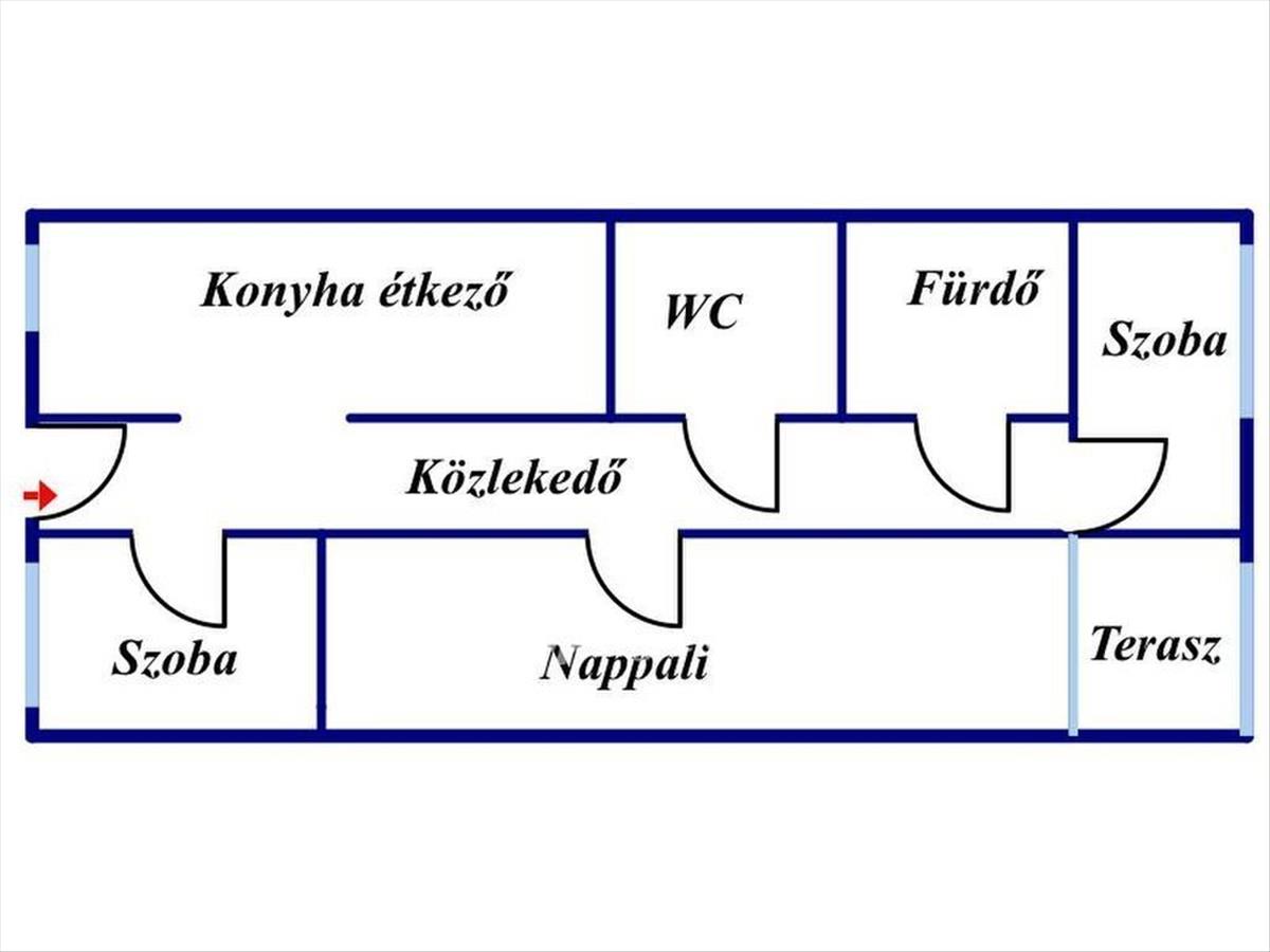 Az 54 m2-es alapterület praktikus elosztású, a három külön nyíló szoba kényelmes életteret biztosít akár családok számára is, de befektetésnek is ideális választás lehet.