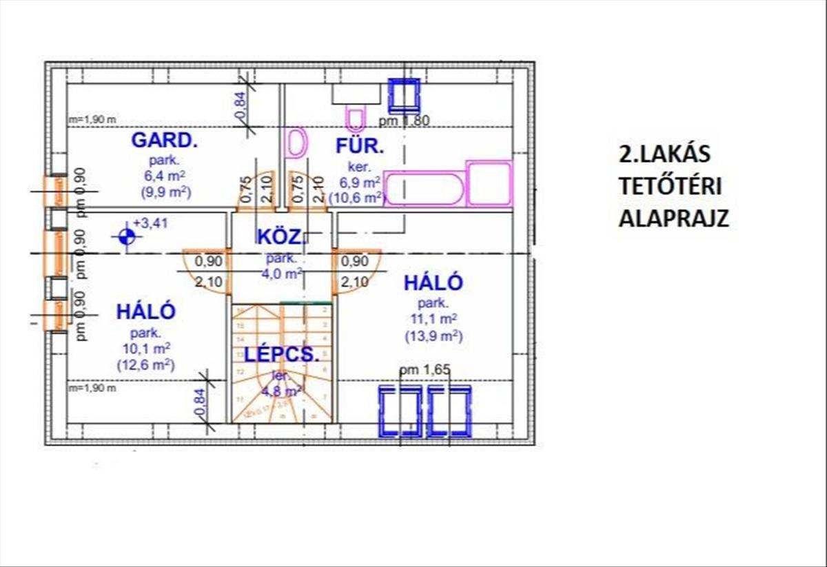 Bruttó alapterület: 111 m² (tetőtéri korrekcióval: 123 m²)