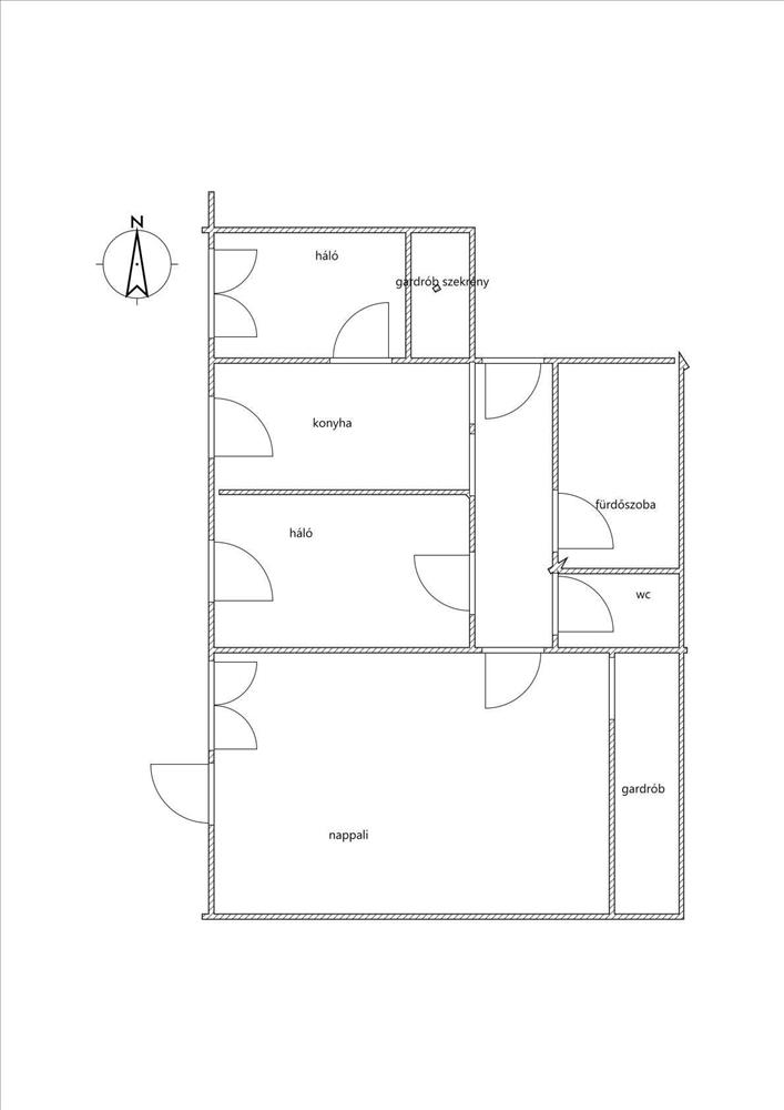 •Helyiségek: 1 tágas szoba + 2 félszoba, konyha, fürdőszoba, külön wc és egy gardrób helyiség.