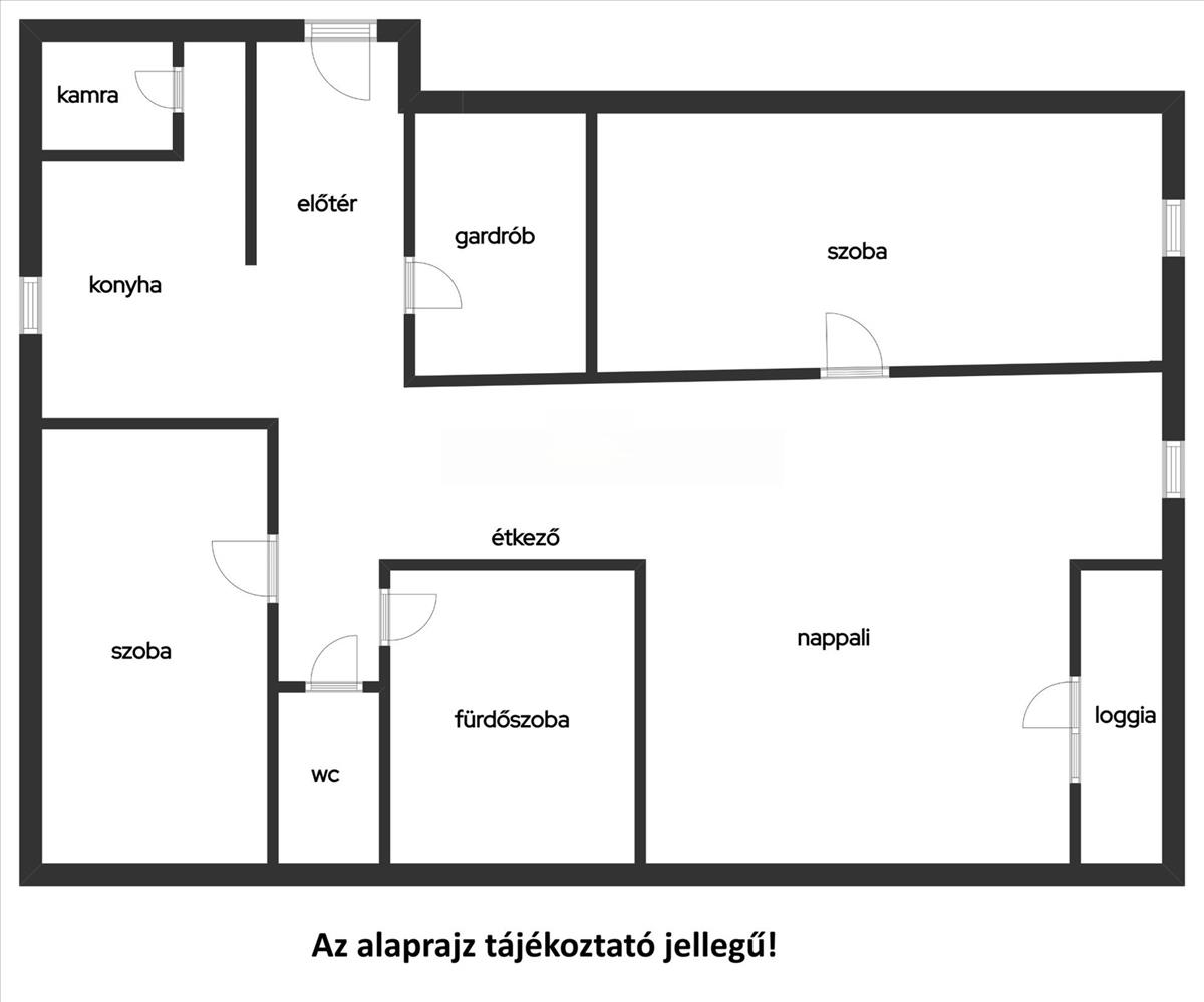Elosztása: Nappali-konyha-étkező, erkély, kamra, 2 külön nyíló szoba, külön nyíló gardrób, fürdőszoba, wc külön helyiségben.