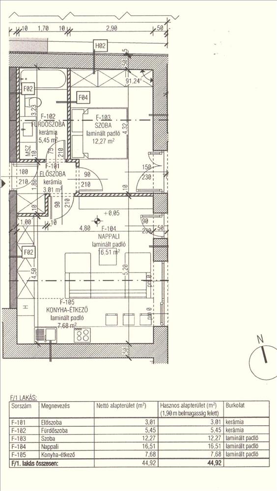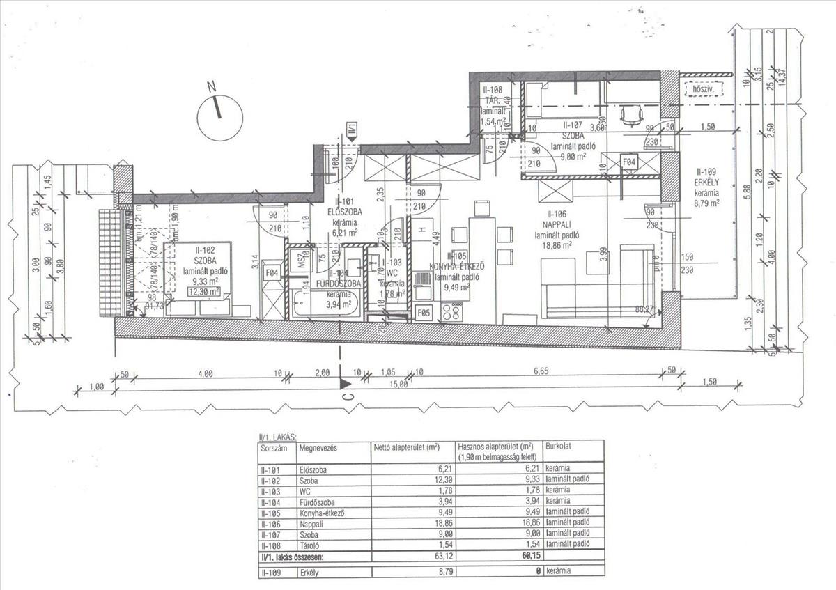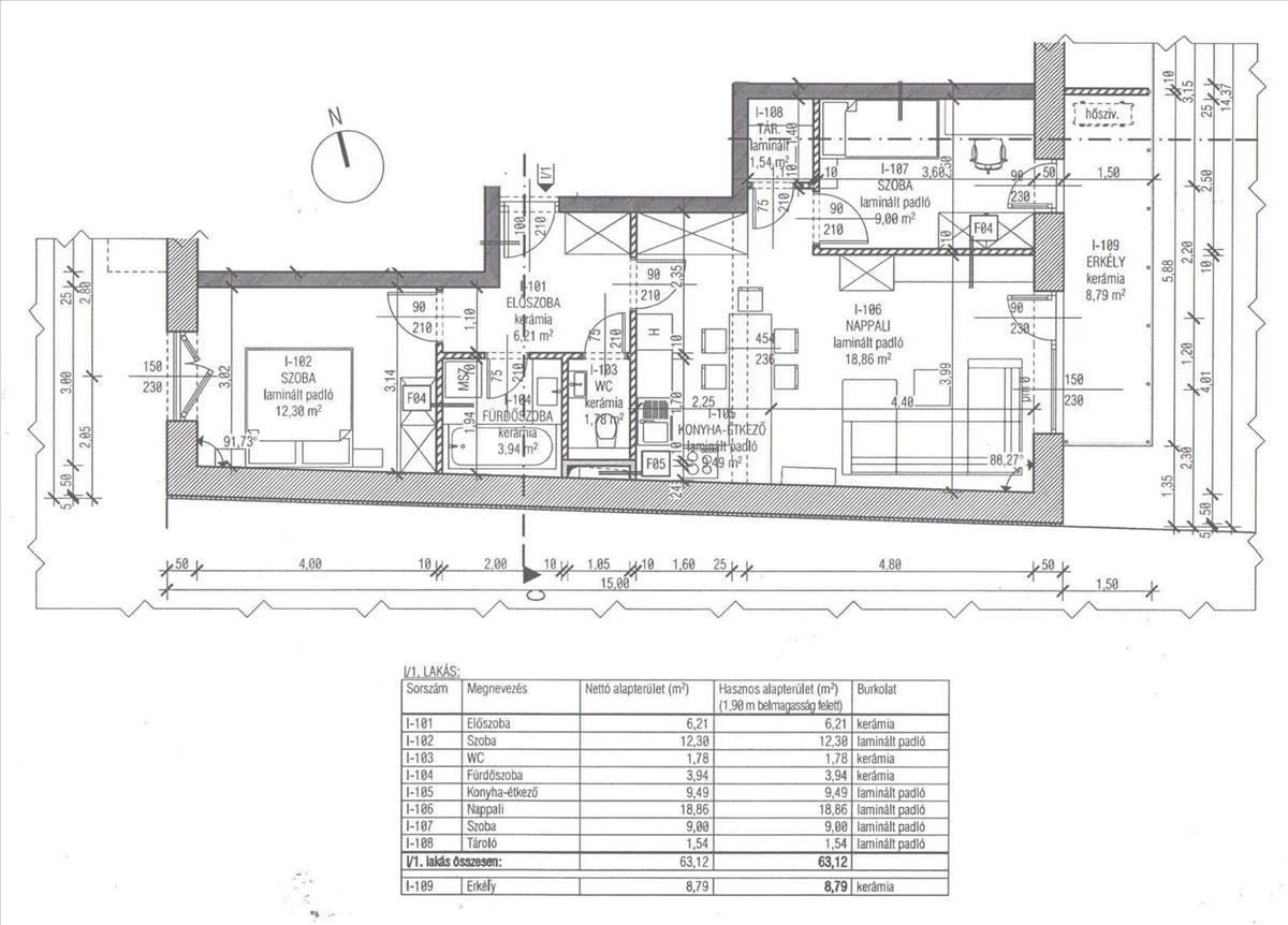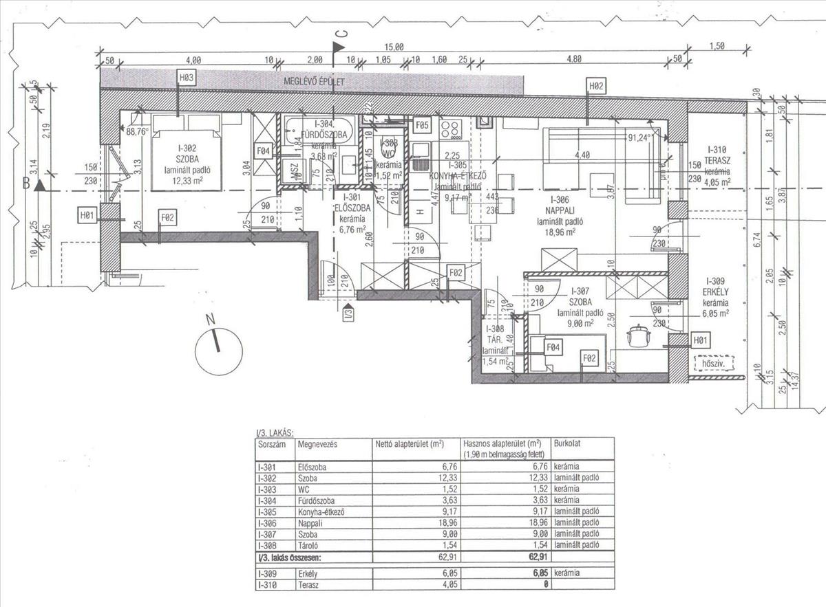 1. emeleti 62, 91 nm-es 2 szoba+ amerikai konyhás nappalis, 4, 05-nm-es erkéllyel.