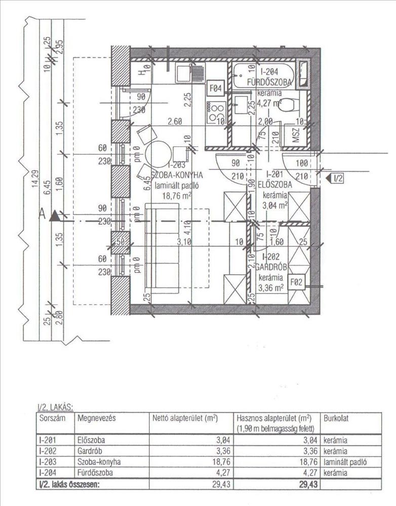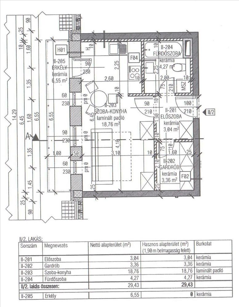 2. emeleti 29, 43 nm-es 1 szoba+ amerikai konyhás, gardróbszobás, 6, 55-nm es erkéllyel.