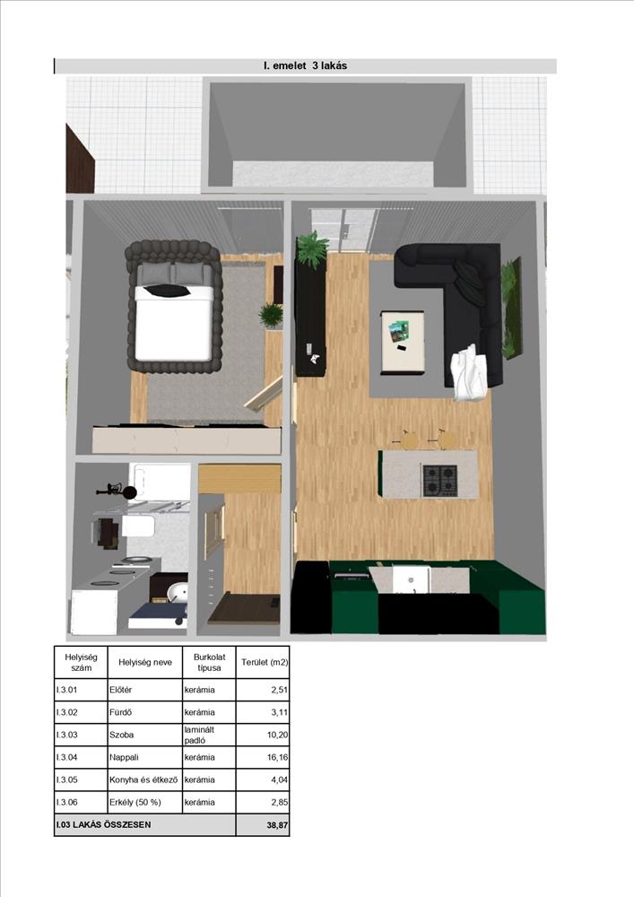 1. Em. 38, 6 Nm (nincs erkély) n+1 szoba Ár: 38, 6 M Ft