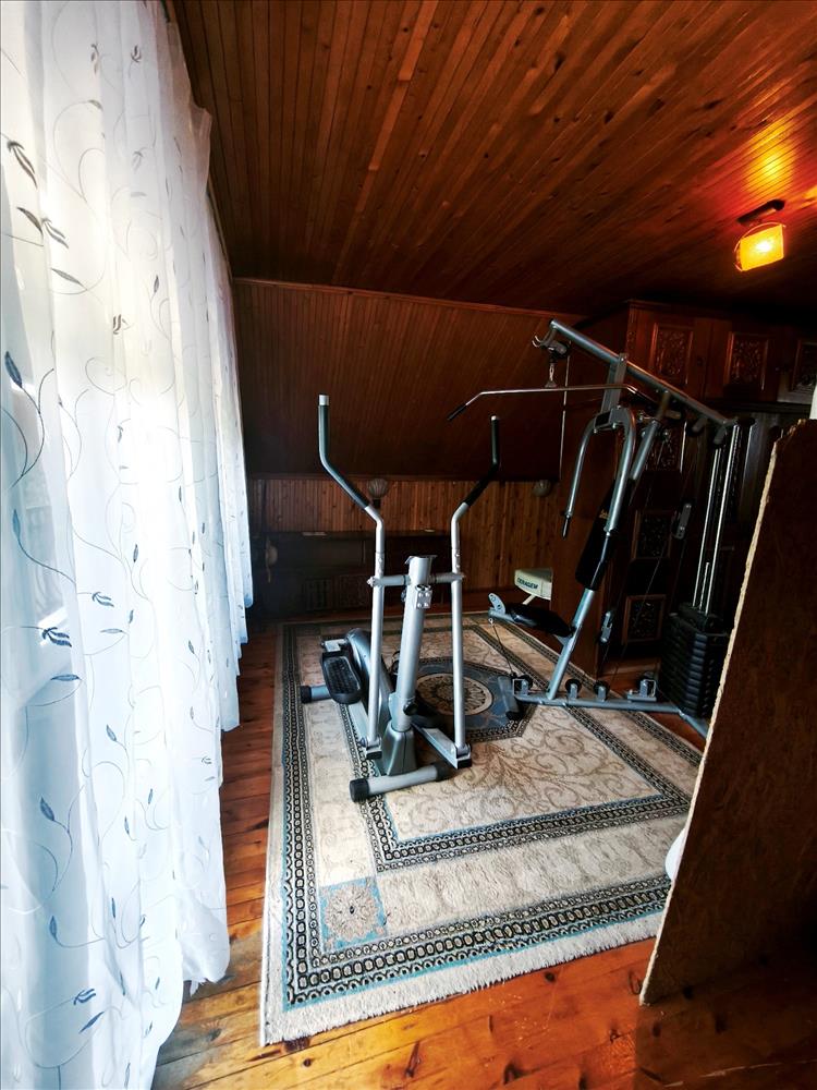 Alsó szinten: nappali, konyha, fürdőszoba, wc, kamra