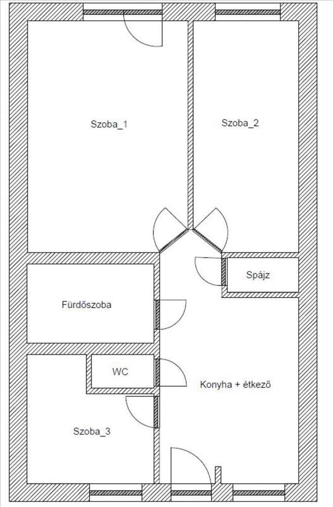 3 különnyíló szoba, konyha, spájz, fürdő, WC