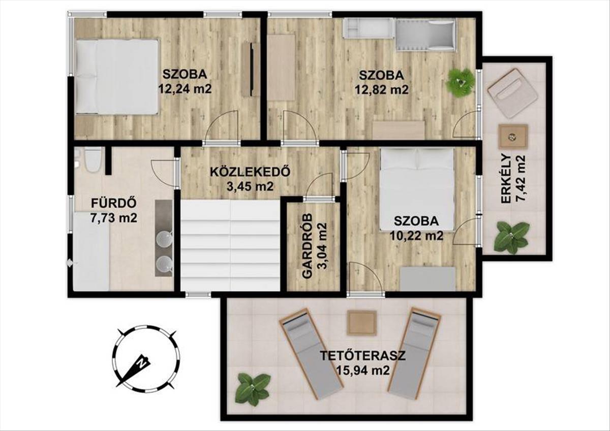- tetőterasz: 17, 2 m2