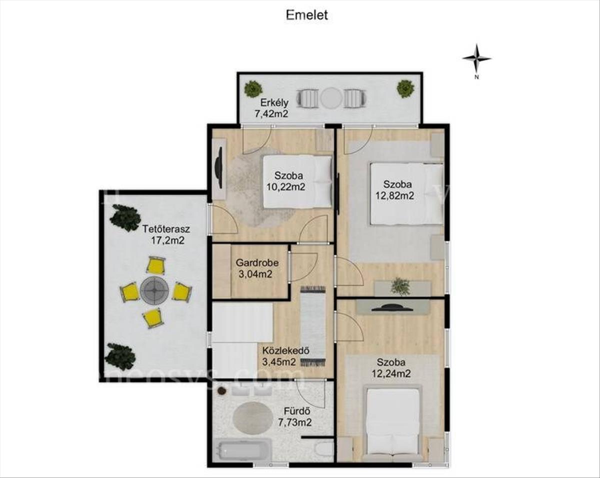 - tetőterasz: 17, 2 m2