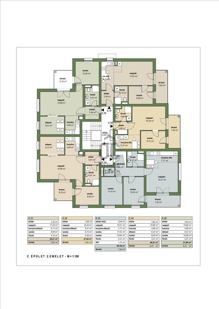 D épület 2. emeleti nappali 1 hálószobás lakás erkéllyel Proje...