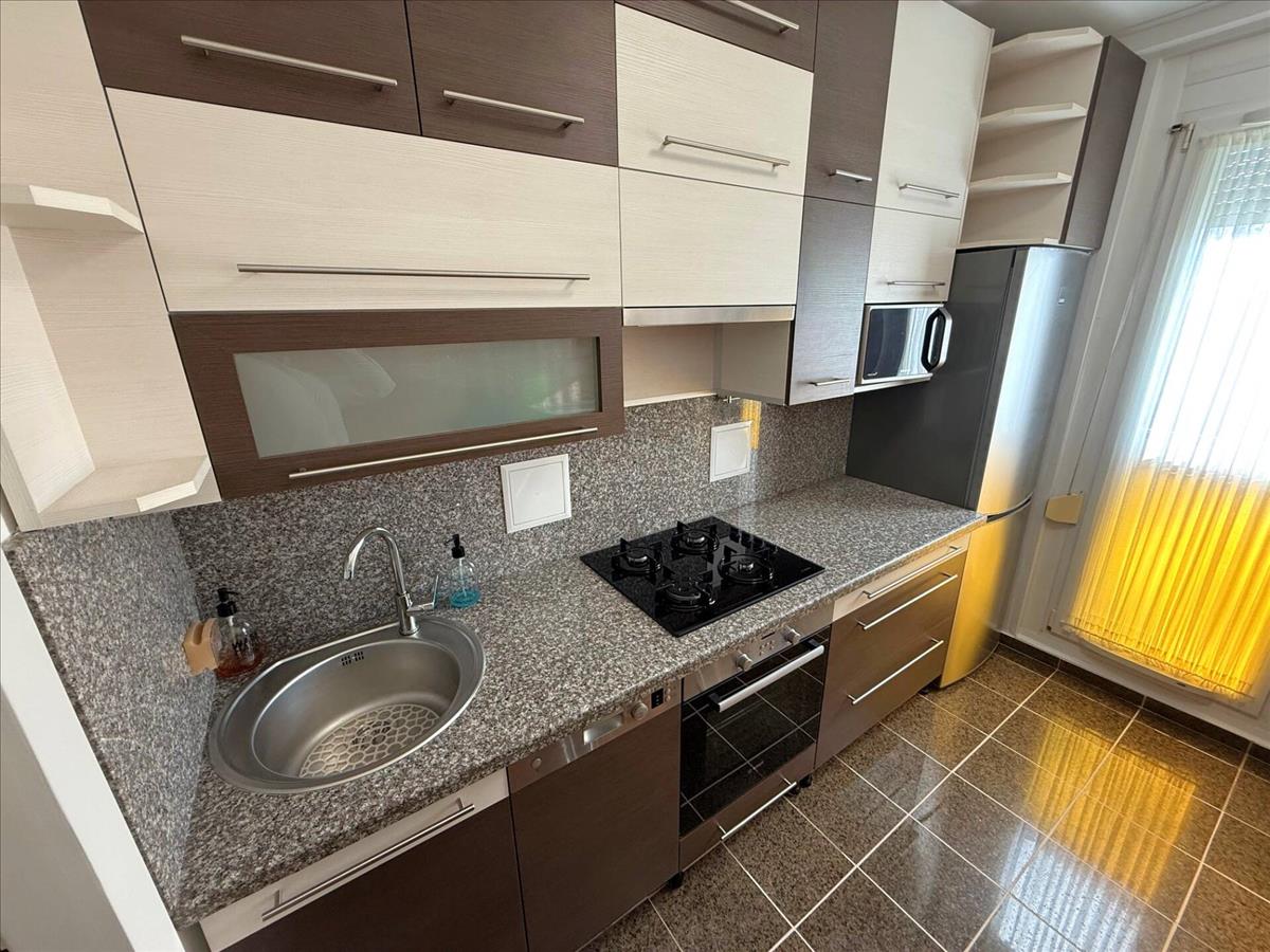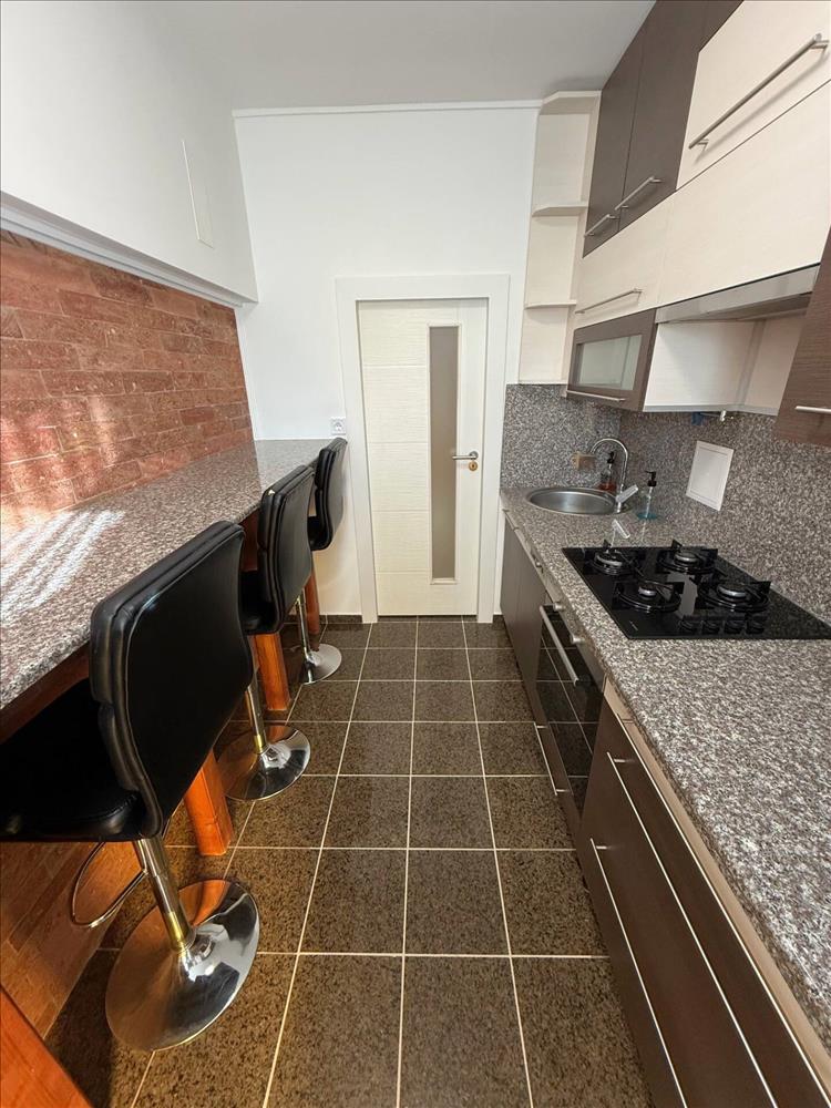 Modern konyhabútor van, energiatakarékos gépekkel (sütő, hűtő, mosogatógép, mikró, főzőlap, elszívó, víztisztító)