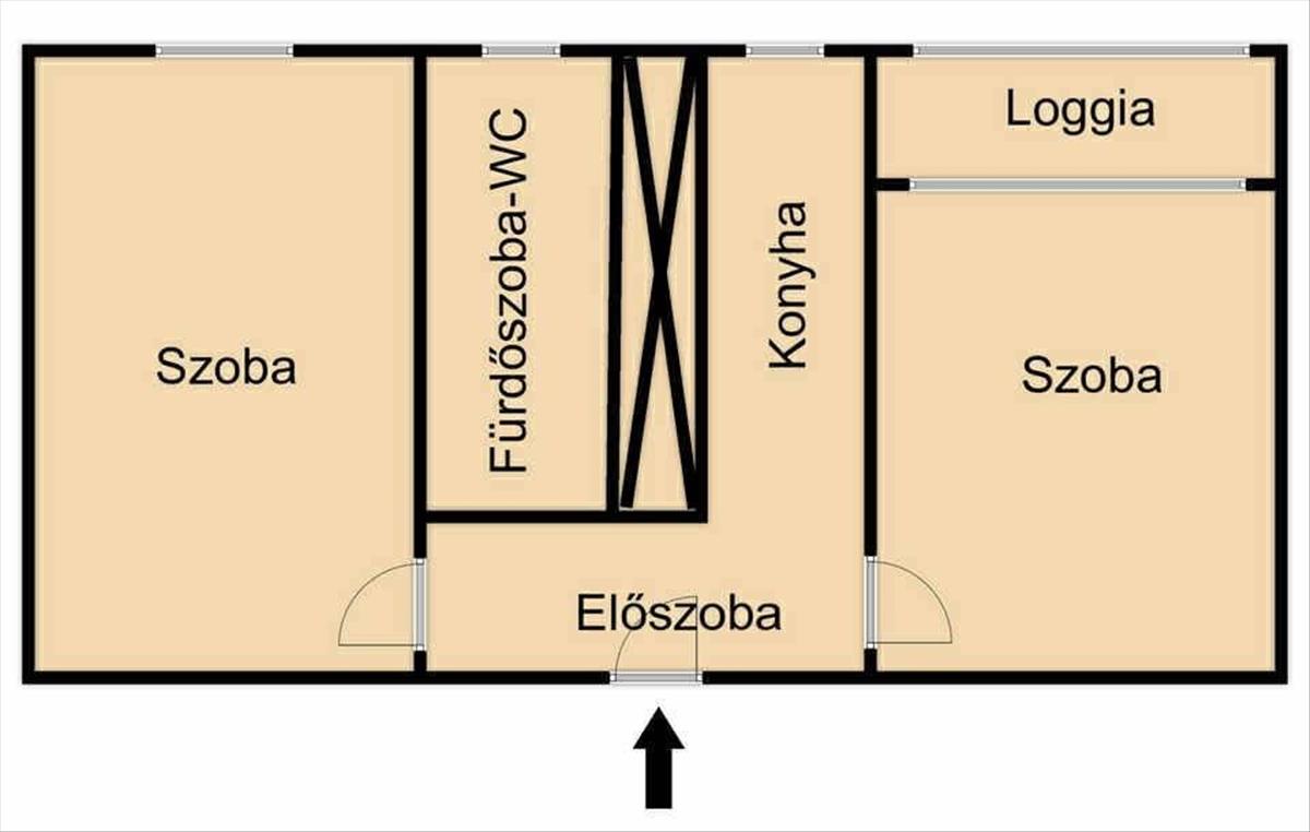 Helyiséglista: előszoba, 2 különnyíló szoba, konyha, fürdő-wc.