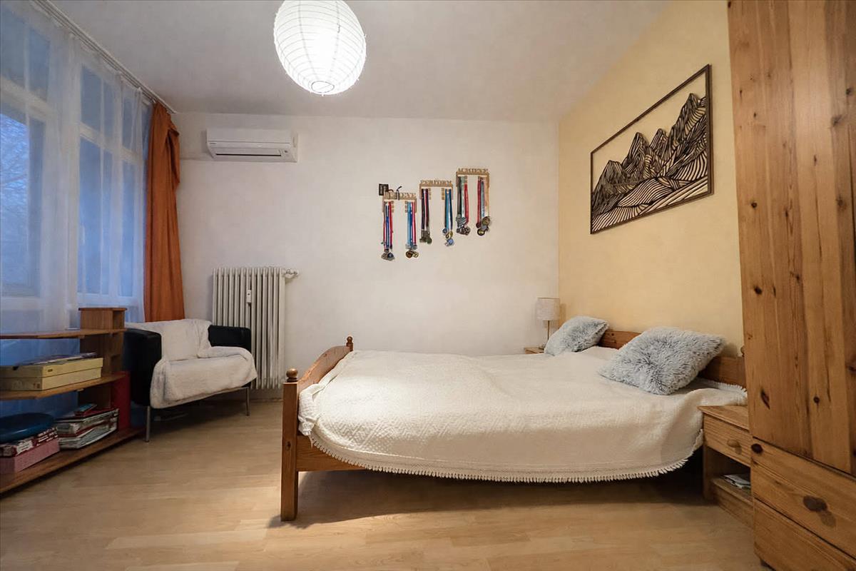 A lakás fűtése távfűtéssel megoldott, a hűtése klímával.