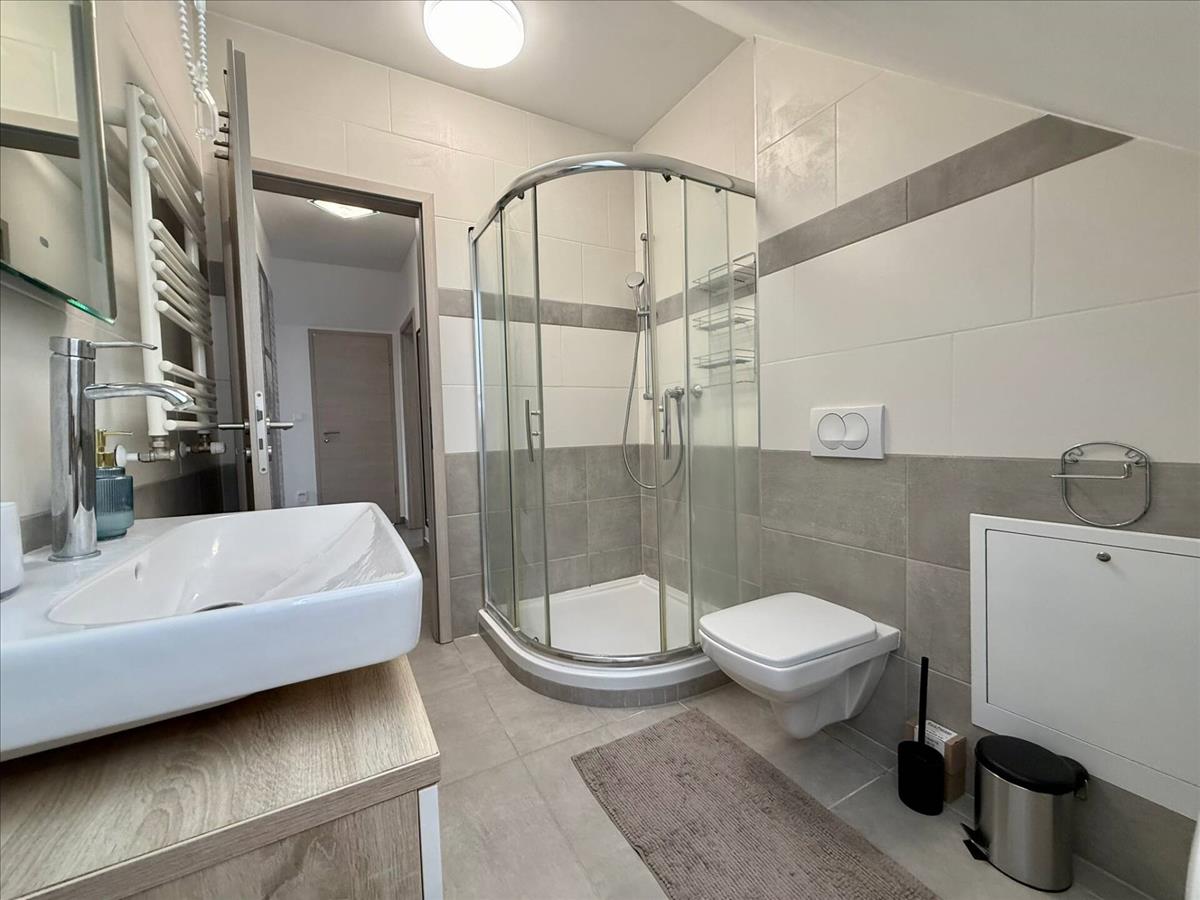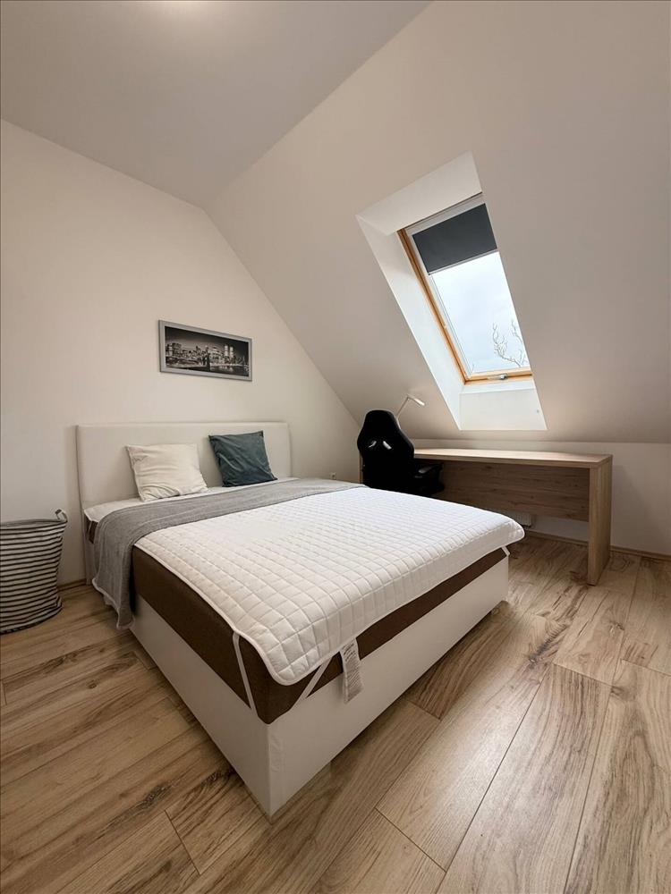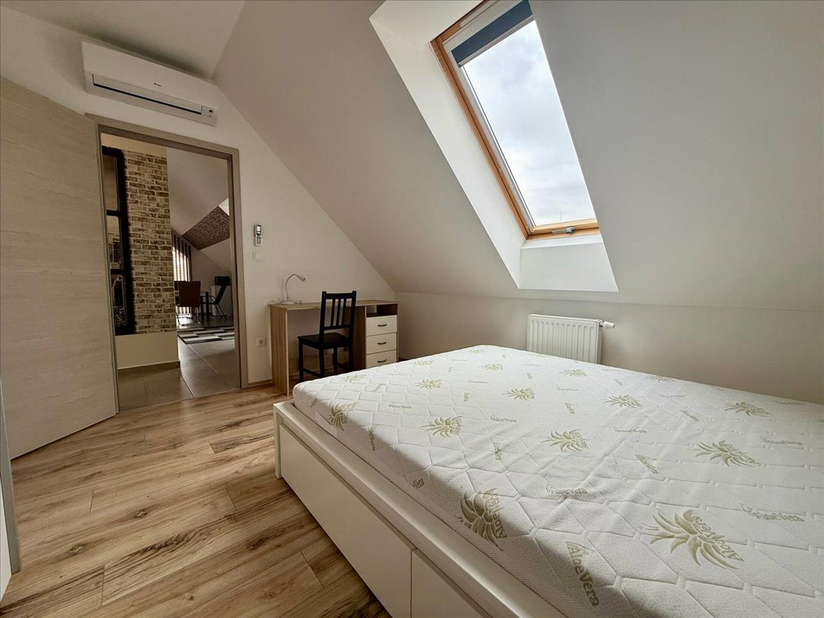 Az ingatlan két tágas hálószobával, nagy amerikai konyha +nappalival, fürdő-wc-vel és egy különálló wc-vel is rendelkezik.