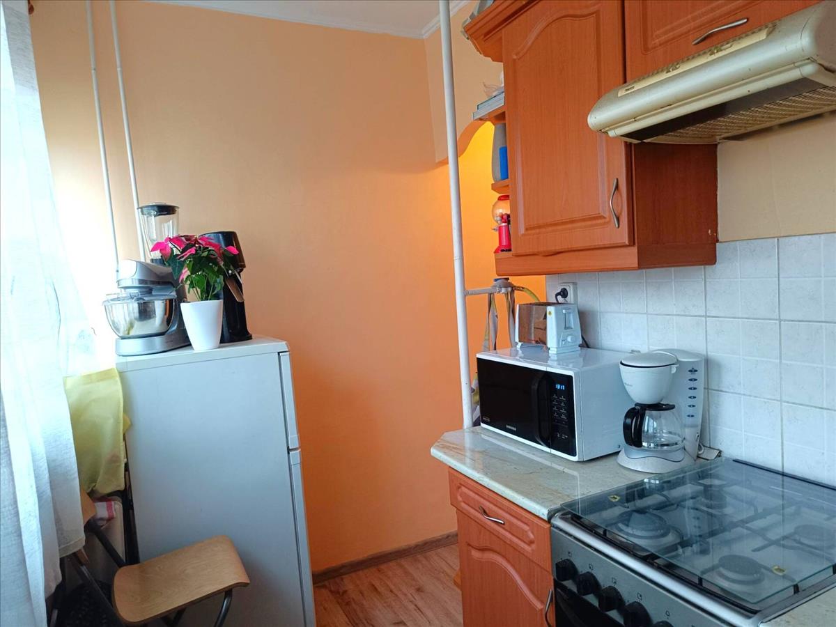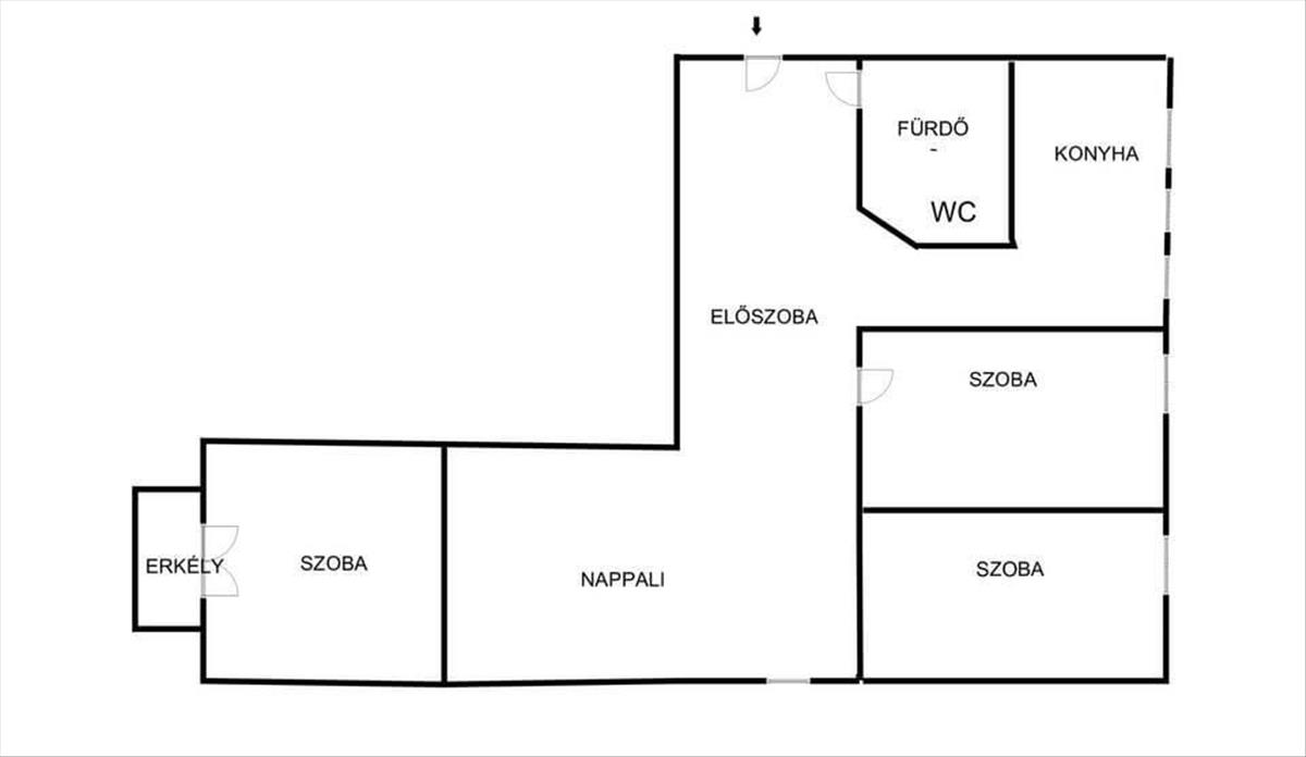 Szeparált konyha, egybenyitott fürdő–WC, nappaliban étkezősarok.
