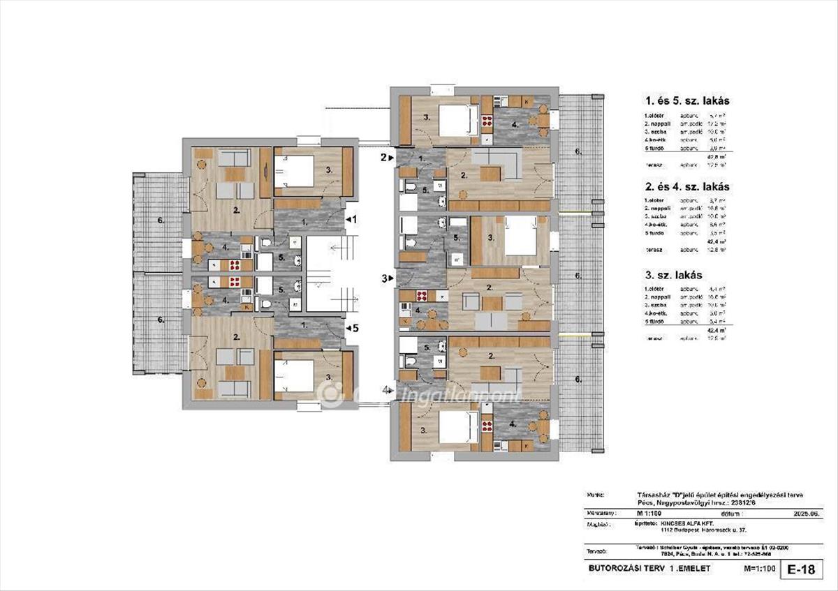 A D épületben 15 db lakás eladó, már most lefoglalható, átadás 2026. Június végén.