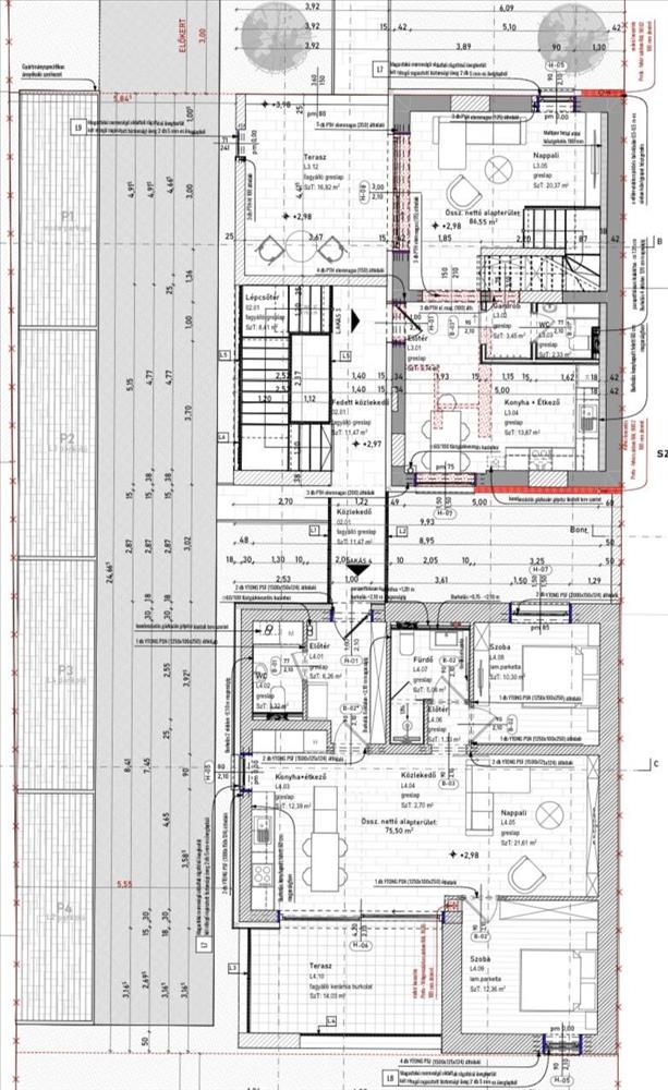 Emeleti 3-as belső kétszintes lakás: 86, 55 m²-es lakás terasszal, tárolóval és udvari beállóval