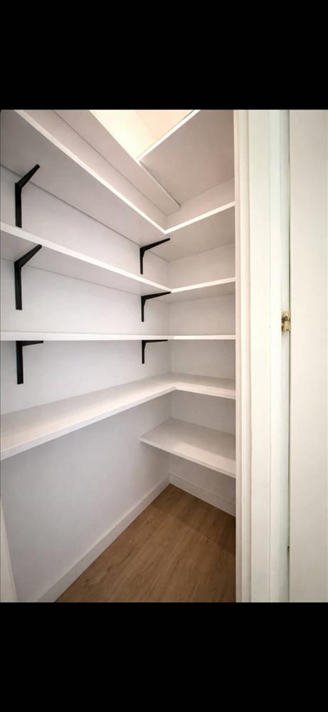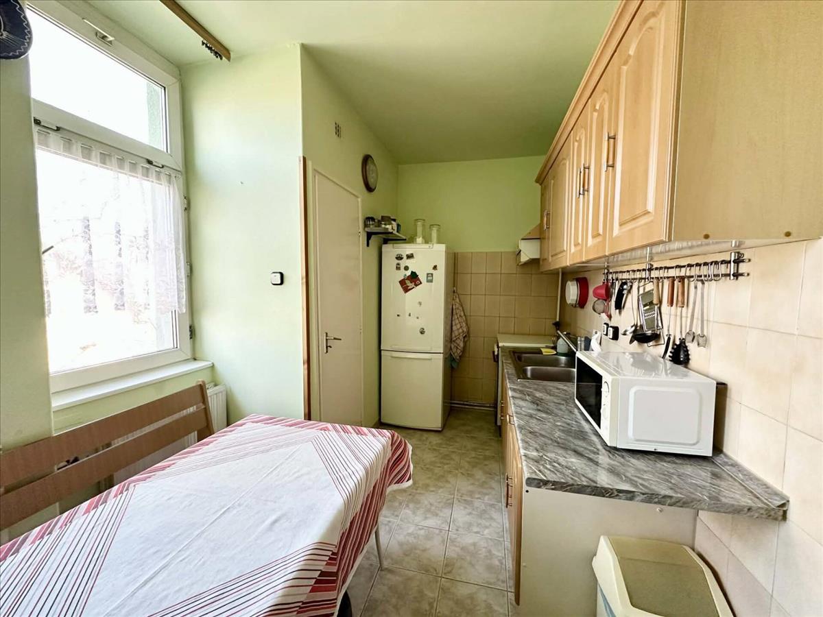 Külön fürdő és wc, szeparált, tágas konyha épített éléskamrával.