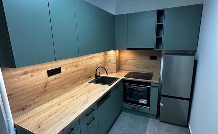 – Új egyedileg gyártott konyhabútor kerül beépítésre, gépekkel (sütő, főzőlap, elszívó. )