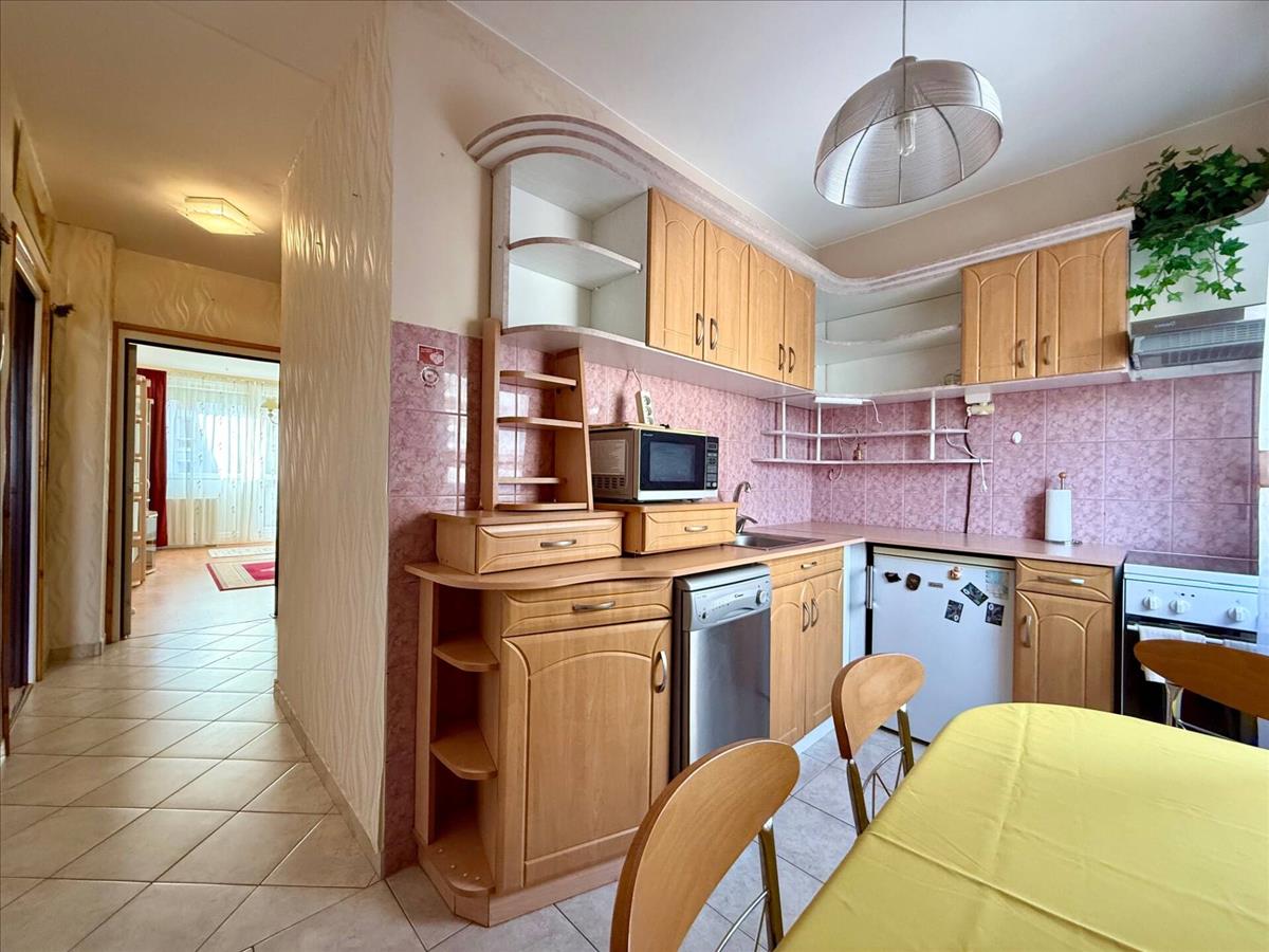 Pécs kedvelt kertvárosi részén, az Aidinger utcába, rendezett lépcsőházban, eladó egy 64 m²-es, 2. emeleti, kiváló állapotú 3 szobás lakás teljes berendezéssel együtt (TV-k, porszívó, hűtő, bútorok).