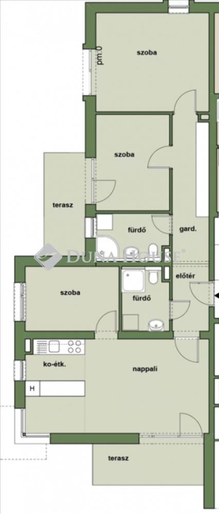 Eladó újszerű kertvárosi lakás, saját parkosított kertkapcsolattal! ! ! ! ! Pécs egyik csendes, zöldövezeti részén kínálunk megvételre egy 2023-ban átadott 92 m²-es földszinti lakást, amely minden igényt kielégítő belső kialakítással és kivételes külső adottságokkal rendelkezik. Kertkapcsolat és extra területekA lakáshoz tartozik egy 240 m²-es kizárólagos használatú, parkosított kert, benne egy könnyűszerkezetes, 10 m²-es kisházzal ideális tárolónak vagy hobbihelyiségnek. Két kényelmes terasz, mindkettő beépített, kinyitható árnyékolóval. a kertből kiskapun keresztül is eljuthatunk a két autóbeállóhoz, melyek közvetlenül a lakás előtt helyezkednek el. Belső elrendezés 3 hálószoba Tágas nappali-konyha-étkező egy légtérben 2 igényes fürdőszobaPrémium felszereltség fap olasz hidegburkolatok Hansgrohe falba süllyesztett csaptelepek Blanco gránit mosogató és csaptelep a konyhában Minőségi német konyhabútor kompakt munkapulttal, konyhaszigettel Új, elektromos fehér alumínium redőnyök minden ablakon Hőszivattyús padlófűtés + fancoil hűtés a kellemes klímáért egész évben Alacsony rezsiköltségek, energiahatékony, és letisztult, igényes belső terek. Elhelyezkedés szempontjából is ideális:A belváros autóval mindössze 7 perc, de a tömegközlekedés is kiváló. a mindennapi ügyintézéshez szükséges szolgáltatások csupán egy percre találhatók: Tesco, Rossmann, gyógyszertár, minden gyalogosan is gyorsan elérhető.