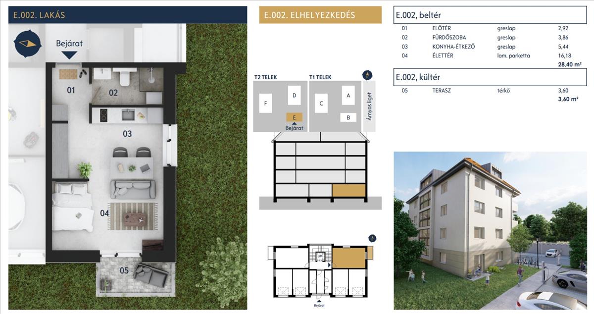 Liget Residence Lakóparkban kínálunk 2 db 28,4 nm-es új építés...