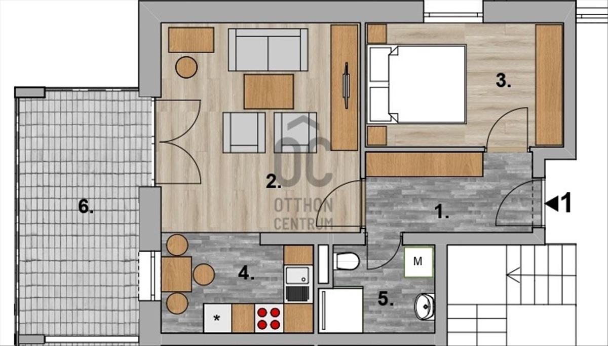 D épület 1. emeleti nappali 1 hálószobás erkélyes lakás Projek...