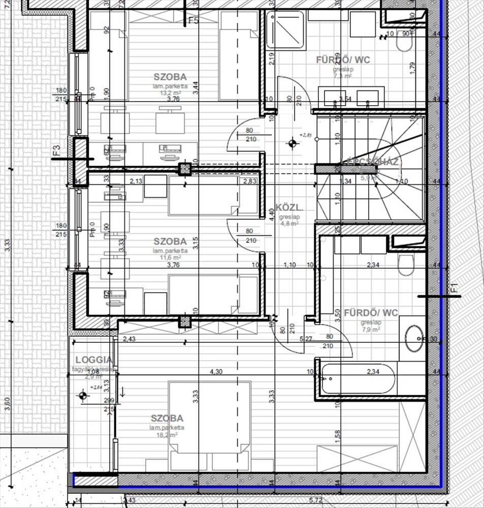 A modern, 3 szintes lakás 2023-ban épült kétlakásos társasházban van.