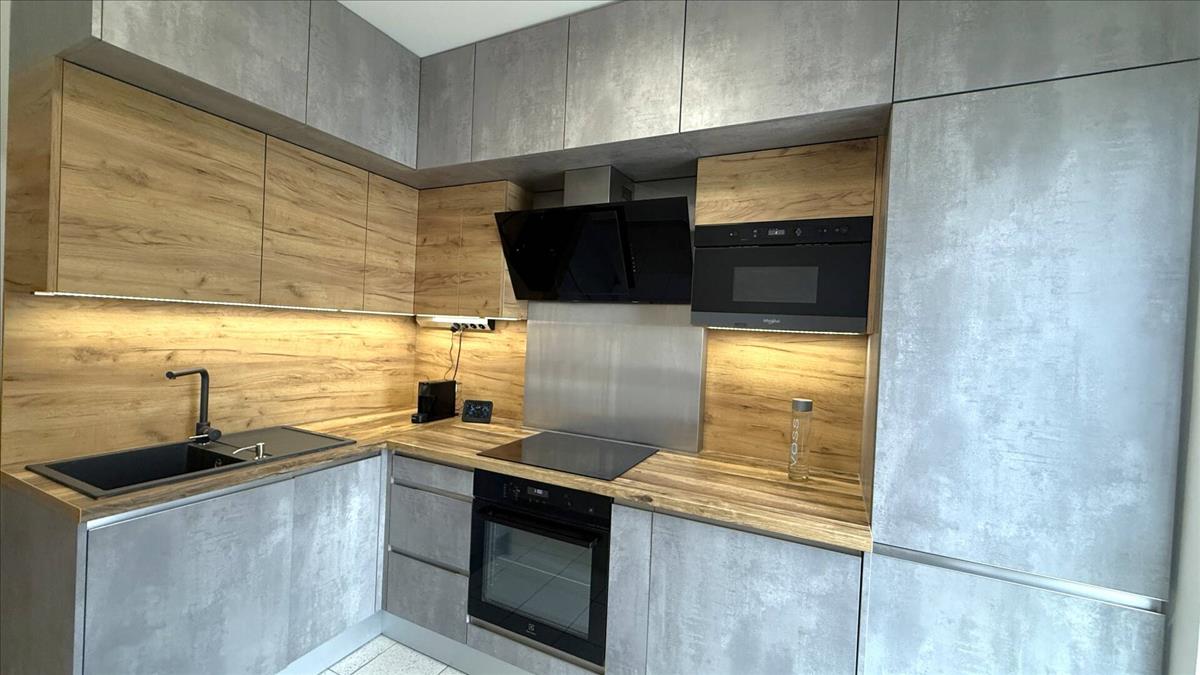 Modern konyhabútor került beépítésre, ami teljesen gépesített. (Főzőlap, sütő, hűtő, mosógép, szagelszívó, mikró).