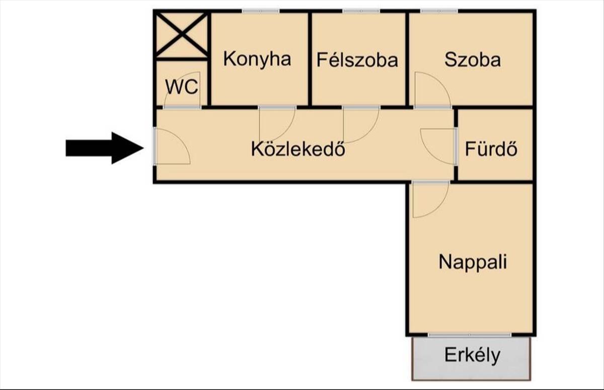 Helyiséglista: közlekedő, konyha, 2 szoba, 1 félszoba, fürdő, külön wc, erkély.