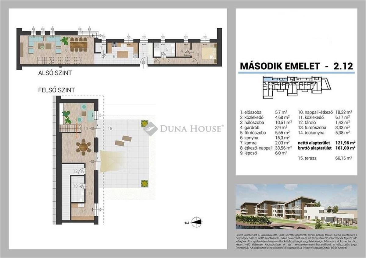 Az Apartmanház magas színvonalú kivitelezés keretein belül épül, nagy hangsúlyt fektetve a jó minőségű és korszerű alapanyagokon túl az esztétikumra és funkcionalitásra.