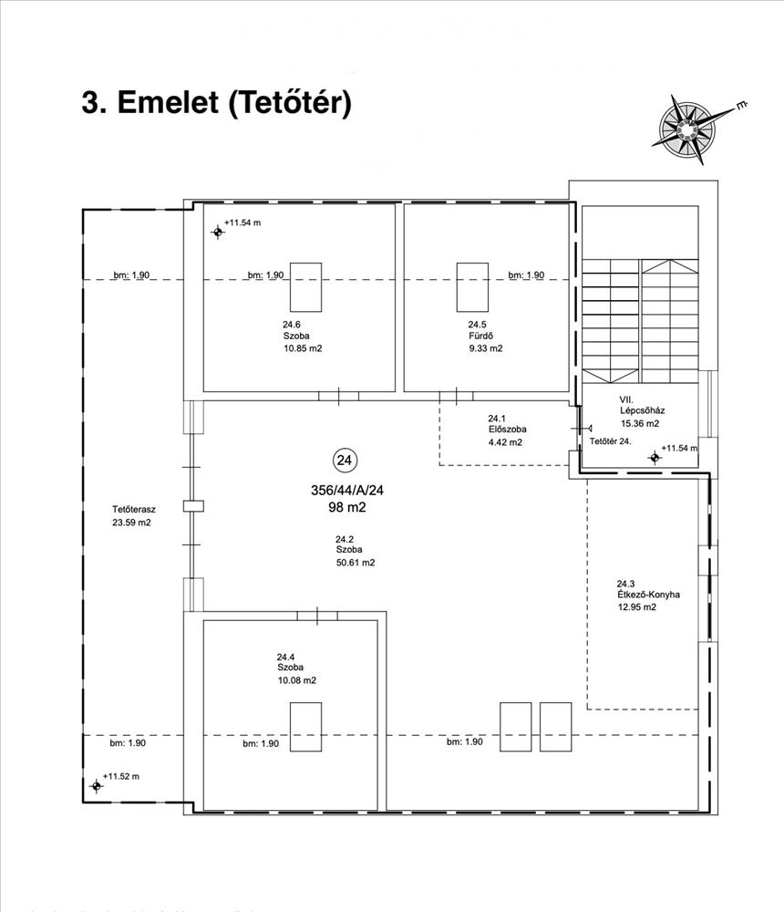 24. Lakás - 98 m2 (bruttó 107. 7 m2) + 23. 59 m2 terasz - 120. 774. 000 Ft. + Autóbeálló 1. 500. 000 Ft. + 4. 51 m2-es tároló 1. 578. 500 Ft.